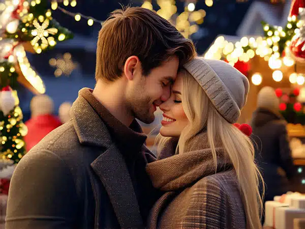 Ihre leisen Keuchen mischten sich mit dem entfernten Klang von Weihnachtsliedern. Der verbotene Reiz, hier mitten auf dem Markt, verstärkte das Knistern zwischen ihnen. „Frohe Weihnachten“, hauchte sie, bevor sie erneut seine Lippen in einem leidenschaftlichen Kuss einfing.